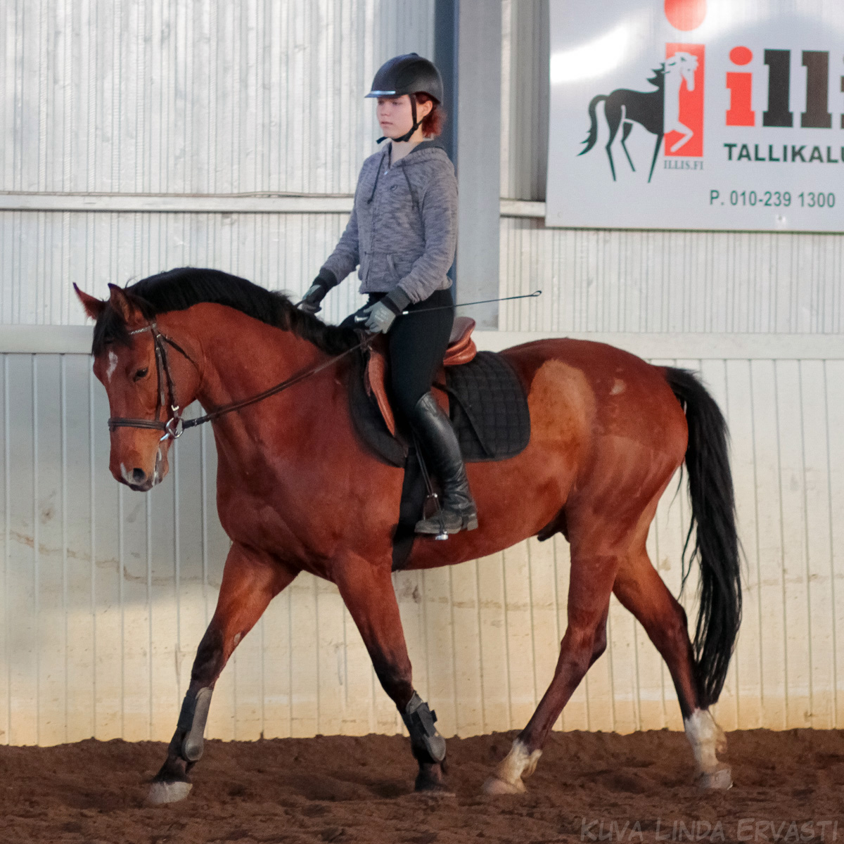 - Etenkin koulupuolella suoraviivainen ja sopii kaikentasoisille ratsastajille. Tekee sen mitä pyydetään, ei yhtään enempää eikä vähempää.