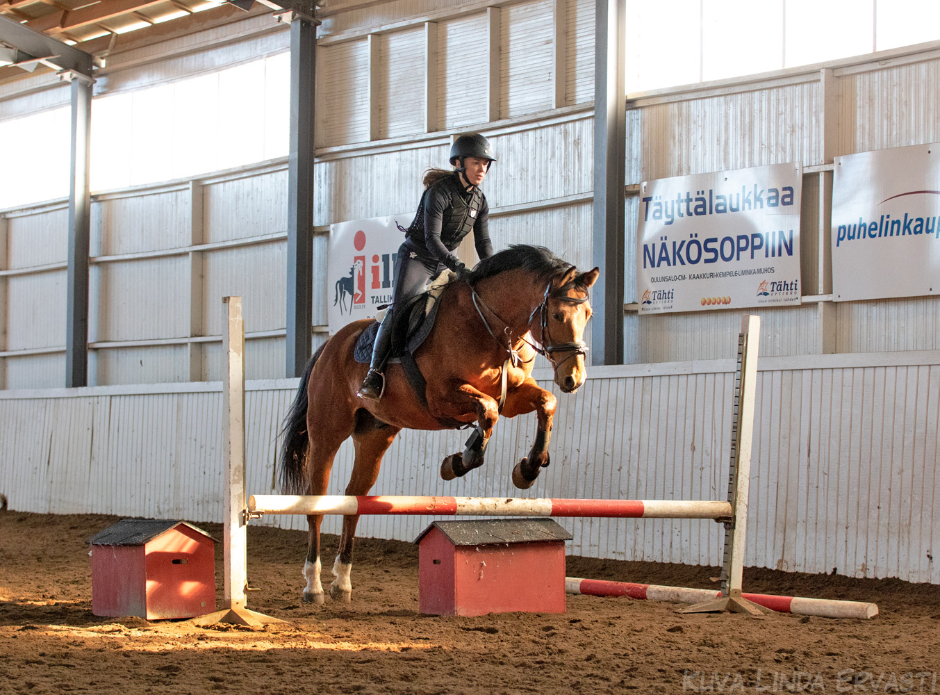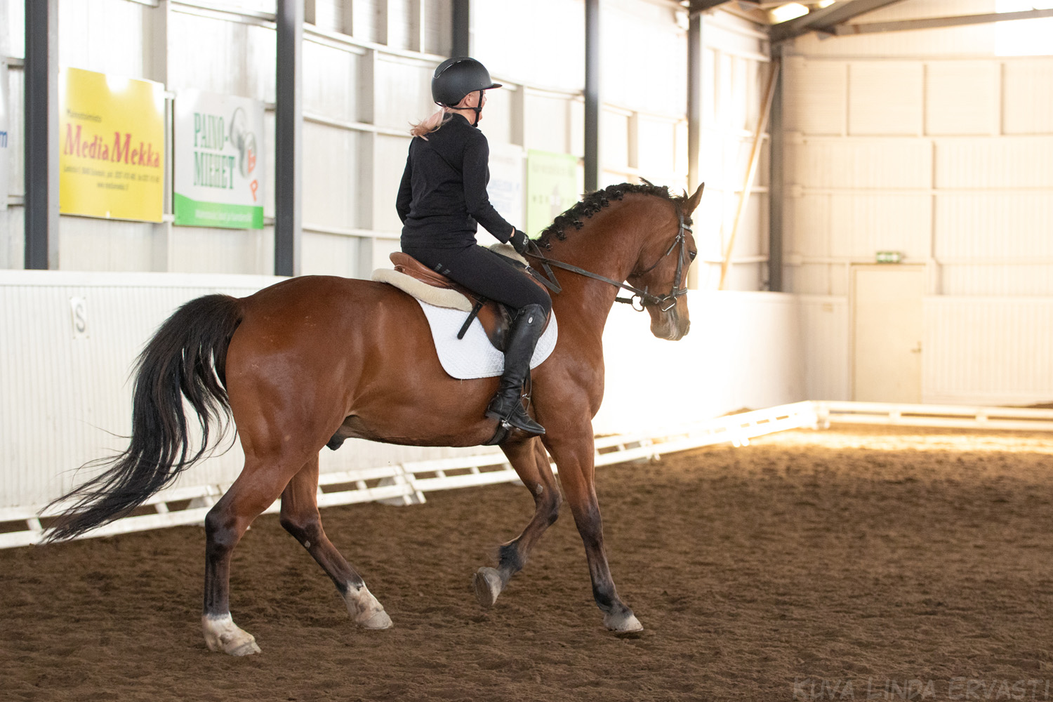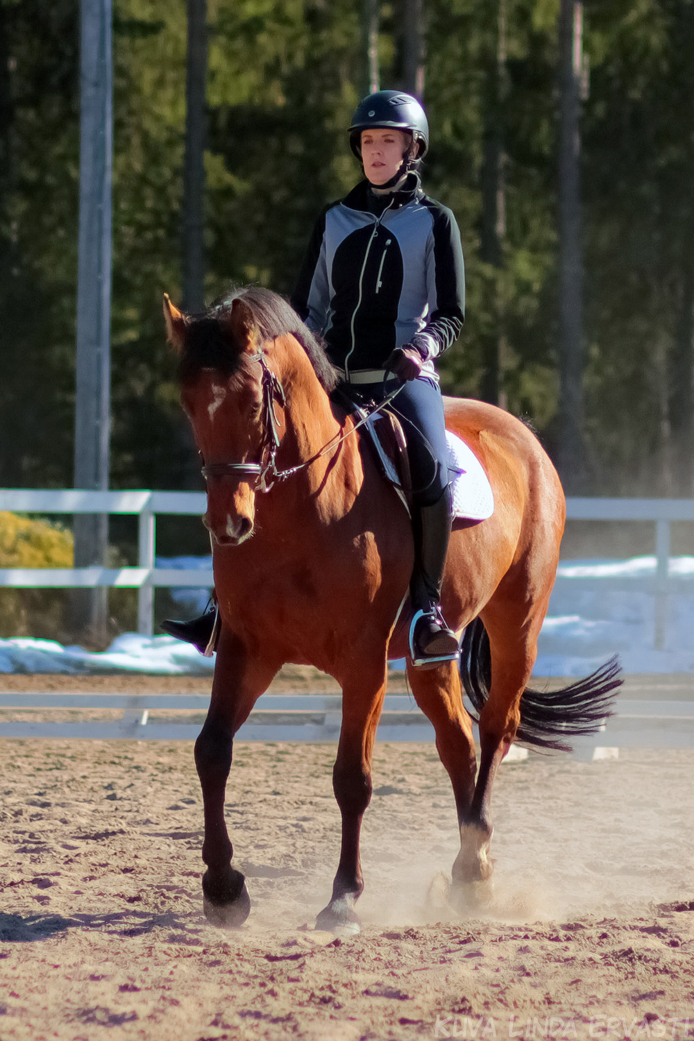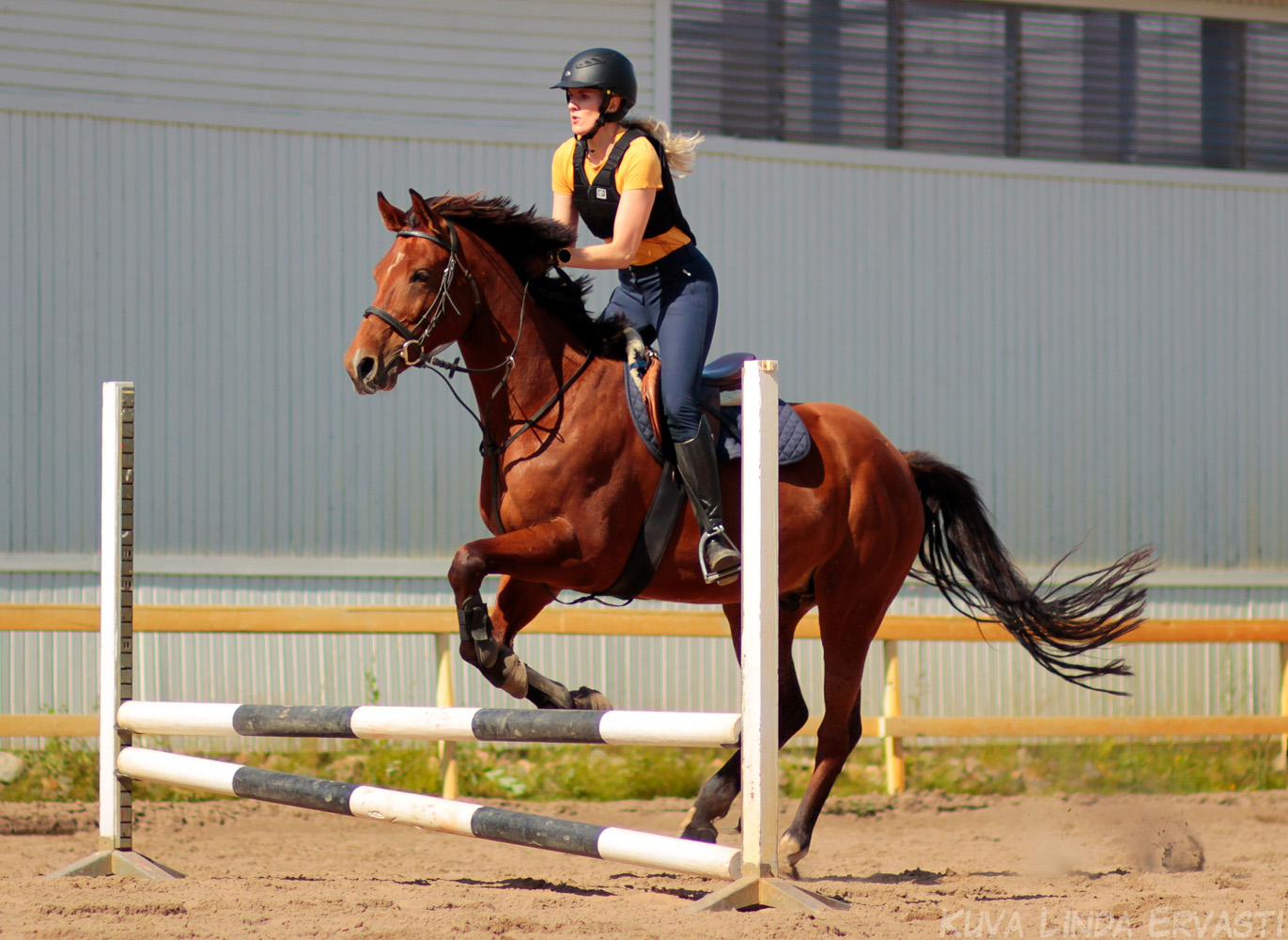- Esteillä vaatii ratsastajalta tukea ja nopeutta keskittyäkseen työntekoon. Puristaminen sekä oman onnen nojaan jättäminen saavat herran jämähtämään siihen paikkaan, vaikka sitten kyse olisi pelkästä maapuomista. Toisaalta motivoiduttuaan sekä ratsastajansa kanssa samalla puolella ollessaan innostuu ja hyppää ratsastajan virheistä välittämättä korkeampiakin tehtäviä :)