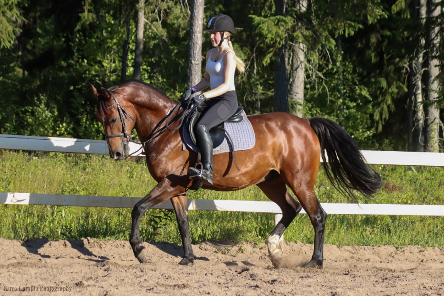 - Ratsain reipas, mutta kiltti. Hyppää näppärästi, kunhan ratsastaja on mukana eikä haaveile omiaan :)